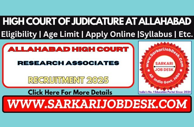 High Court of Judicature at Allahabad (Prayagraj)Allahabad High Court Research Associates Recruitment 2025Advt No. : 01/ Research Associates/2025: Short Details of NotificationWWW.SARKARIJOBDESK.COM |