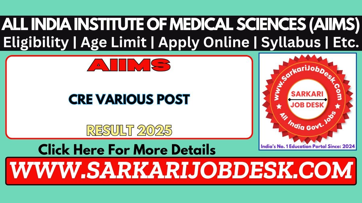 All India Institute of Medical Sciences (AIIMS)AIIMS CRE Various Post Result 2025AIIMS CRE Various Post Result 2025 : Short Details of NotificationWWW.SARKARIJOBDESK.COM |