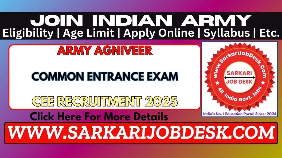 Join Indian Army (Bhartiya Sena)Indian Army Common Entrance Exam CEE Exam 2025-26Army Agniveer Rally Exam 2025| Short Details of NotificationWWW.SARKARIJOBDESK.COM |