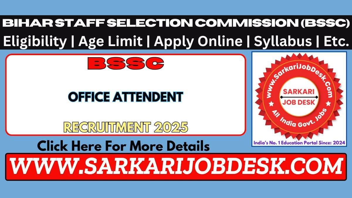 Bihar BSSC Office Attendant Recruitment 2025 : Vacancy Details Total : 3727 Post |