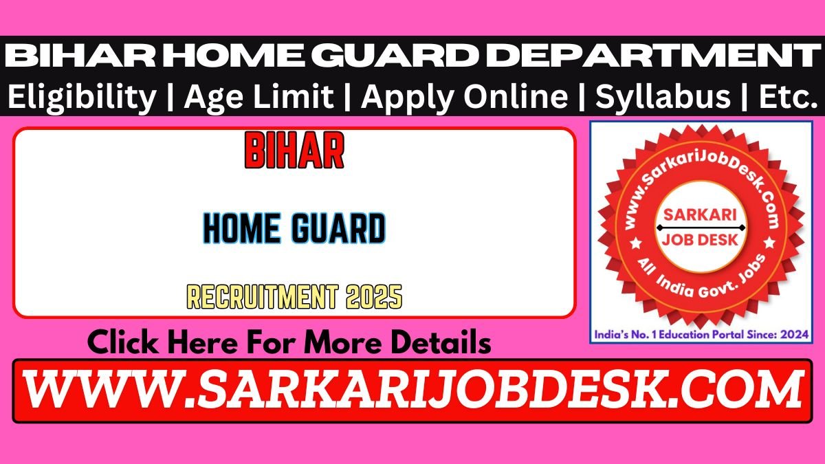 Short Information : | The Bihar Home Guard Department has released the official notification for the Bihar Home Guard Recruitment 2025. Candidates interested in applying for this vacancy can submit their applications online from 27th March 2025 to 16th April 2025. For complete details regarding eligibility criteria, age limit, educational qualifications, pay scale, and the selection process, applicants are advised to carefully read the official advertisement before applying. |