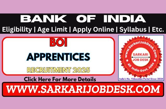 Bank of India BOIBank of India Apprentice Recruitment 2025BOI Apprentices Exam 2025 : Short Details of NotificationWWW.SARKARIJOBDESK.COM |