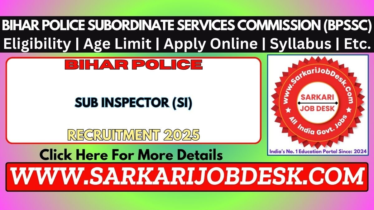 Bihar Police Subordinate Services Commission (BPSSC)Bihar Police Sub Inspector (SI) Recruitment 2025BPSSC SI Advt No.: 05/2025 : Short Details of NotificationWWW.SARKARIJOBDESK.COM |