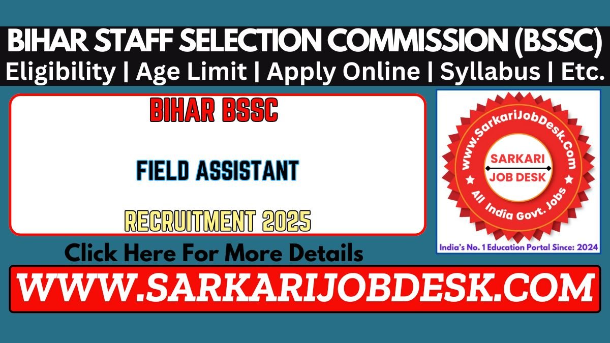 Bihar Staff Selection Commission BSSCBihar Field Assistant (Agriculture Department) Recruitment 2025BSSC Advt No. : 03/2025 : Short Details of NotificationWWW.SARKARIJOBDESK.COM |