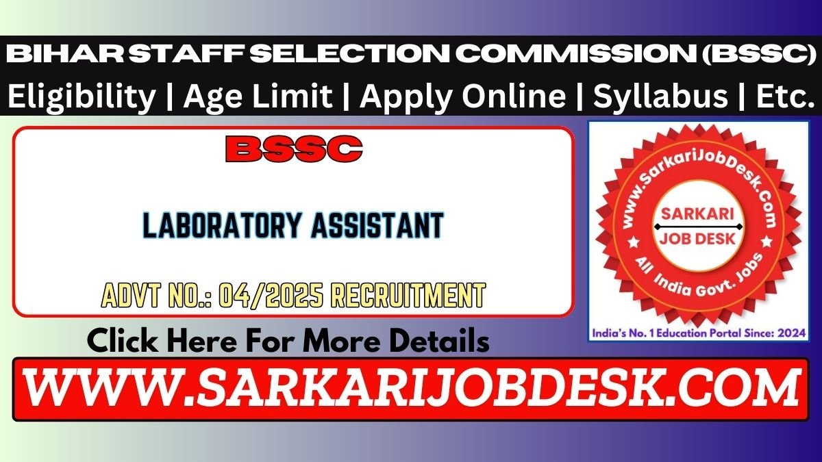 Bihar Staff Selection Commission BSSCBihar Laboratory Assistant Recruitment 2025BSSC Advt No. : 04/2025 : Short Details of NotificationWWW.SARKARIJOBDESK.COM |