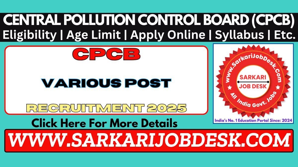 Central Pollution Control Board (CPCB)CPCB MTS, DEO, Assistant & Other Various Post Recruitment 2025CPCB Advt No 01/2025 Short Details of NotificationWWW.SARKARIJOBDESK.COM |