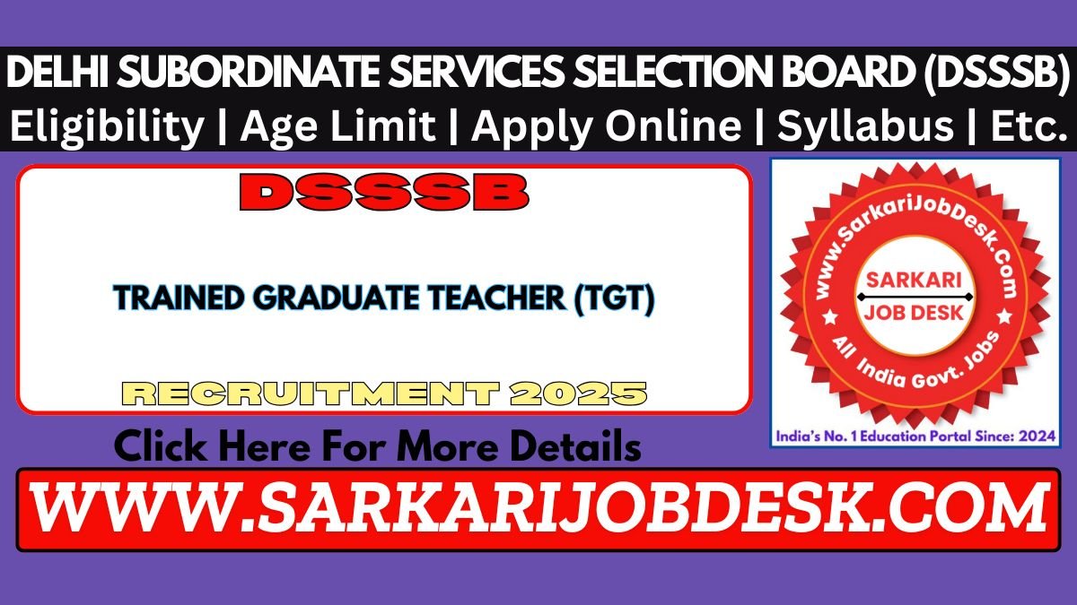 Delhi Subordinate Services Selection Board (DSSSB)DSSSB TGT Teacher Recruitment 2025DSSSB TGT Teacher Advt No : 06/2025 : Short Details of NotificationWWW.SARKARIJOBDESK.COM |