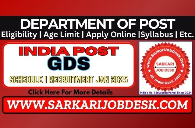 Department of Post (India Post)India Post Gramin Dak Sevaks GDS Recruitment 2025 Schedule I January 2025India Post GDS January 2025 : Short Details of NotificationWWW.SARKARIJOBDESK.COM |