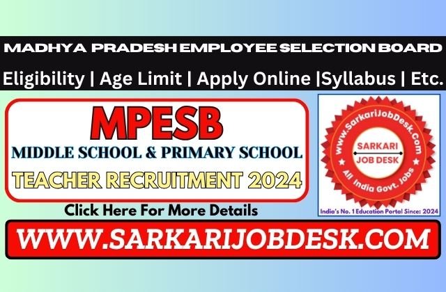 Madhya Pradesh Employee Selection Board (MPESB)MP ESB MP Middle & Primary School Teacher Selection Test Recruitment 2024MPESB MS PS Teacher Exam 2025 : Short Details of NotificationWWW.SARKARIJOBDESK.COM |