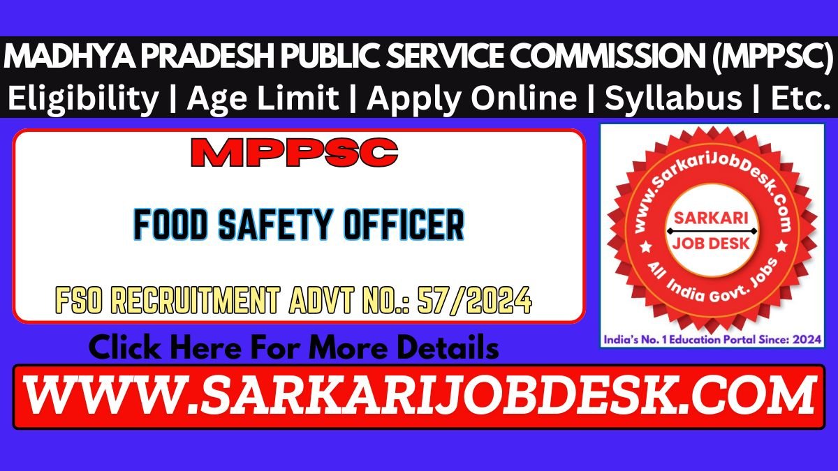 Madhya Pradesh Public Service Commission (MPPSC)Madhya Pradesh MPPSC Food Safety Officer Recruitment 2025MPPSC FSO Advt No. : 57/2024 : Short Details of NotificationWWW.SARKARIJOBDESK.COM |