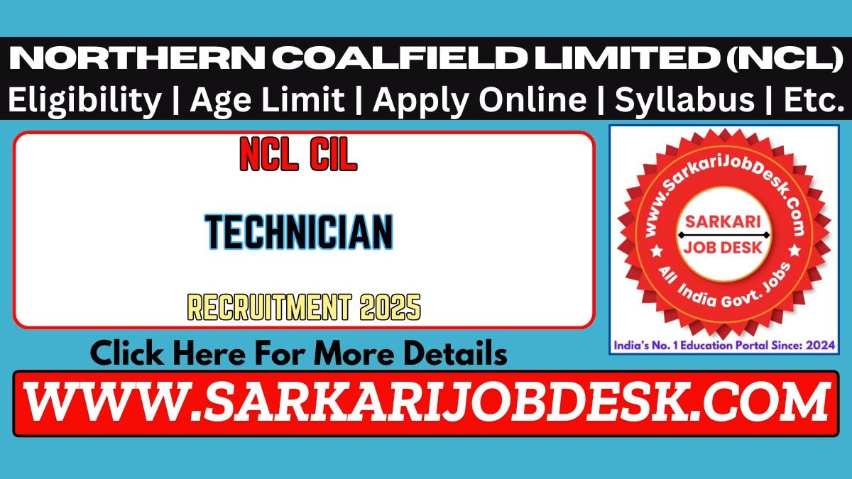 Northern Coalfield Limited (NCL)NCL CIL Technician (Trainee) Recruitment 2025NCLCIL Technician Exam 2025 : Short Details of NotificationWWW.SARKARIJOBDESK.COM |