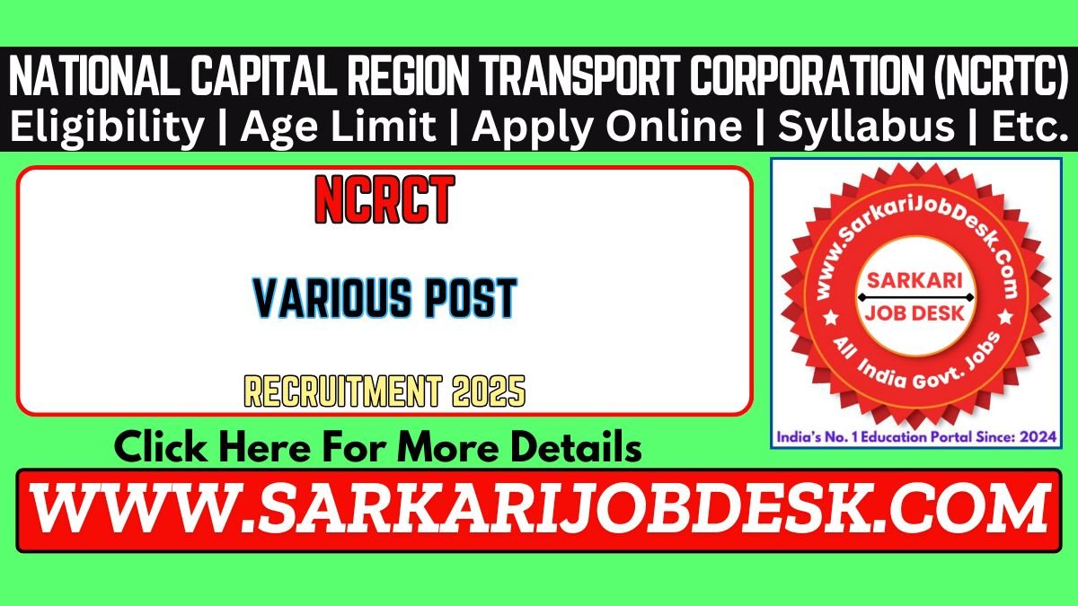 National Capital Region Transport Corporation (NCRTC)NCRTC Various Post Recruitment 2025Advt No. : O&M-13/2025 Short Details of NotificationWWW.SARKARIJOBDESK.COM |