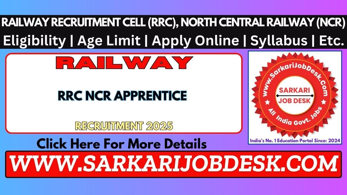 Railway Recruitment Cell (RRC), North Central Railway (NCR)Railway Recruitment Cell Recruitment 2025Railway RRC NCR Advt. No.: 01/2025 : Short Details of NotificationWWW.SARKARIJOBDESK.COM |