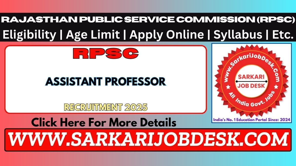 Rajasthan Public Service Commission (RPSC)RPSC Assistant Professor Recruitment 2025RPSC Assistant Professor Advt No. 10/2025 : Short Details of NotificationWWW.SARKARIJOBDESK.COM |
