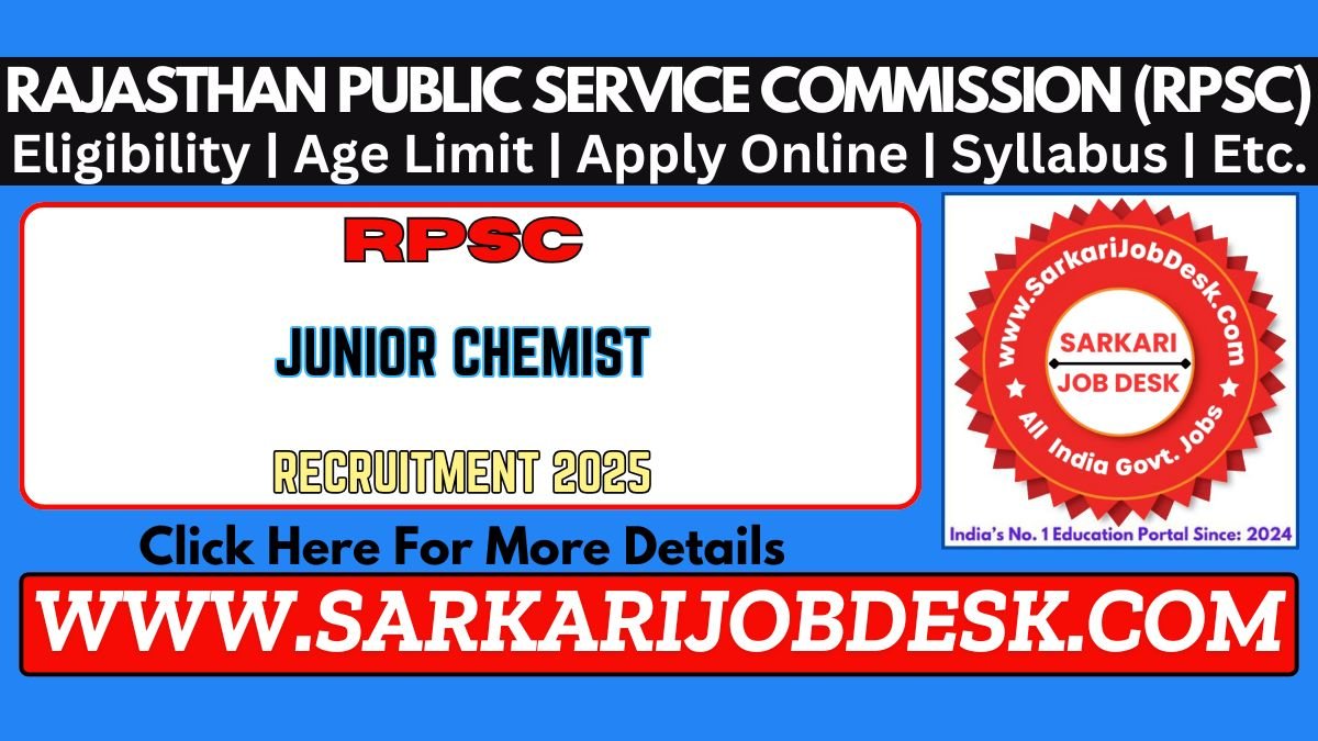 Rajasthan Public Service Commission (RPSC)RPSC Junior Chemist Recruitment 2025RPSC Junior Chemist Advt No. : 02/2025 : Short Details of NotificationWWW.SARKARIJOBDESK.COM |