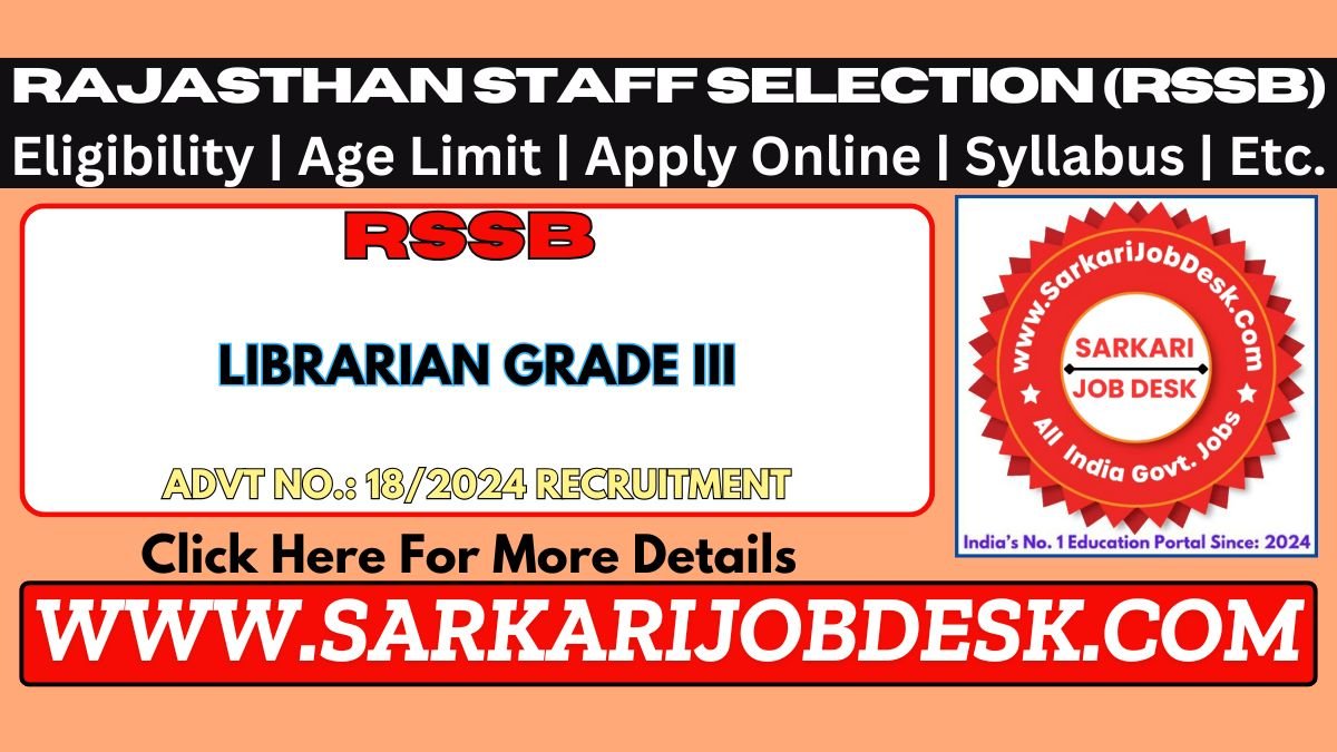 Rajasthan Staff Selection Board (RSSB) | RSMSSBRSMSSB Rajasthan Librarian Grade III Recruitment 2025Rajasthan Librarian Advt No. : 18/2024 : Short Details of NotificationWWW.SARKARIJOBDESK.COM |