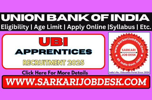 Union Bank of India (UBI)Union Bank Apprentice Recruitment 2025Union Bank Apprentices Exam 2025 : Short Details of NotificationWWW.SARKARIJOBDESK.COM |