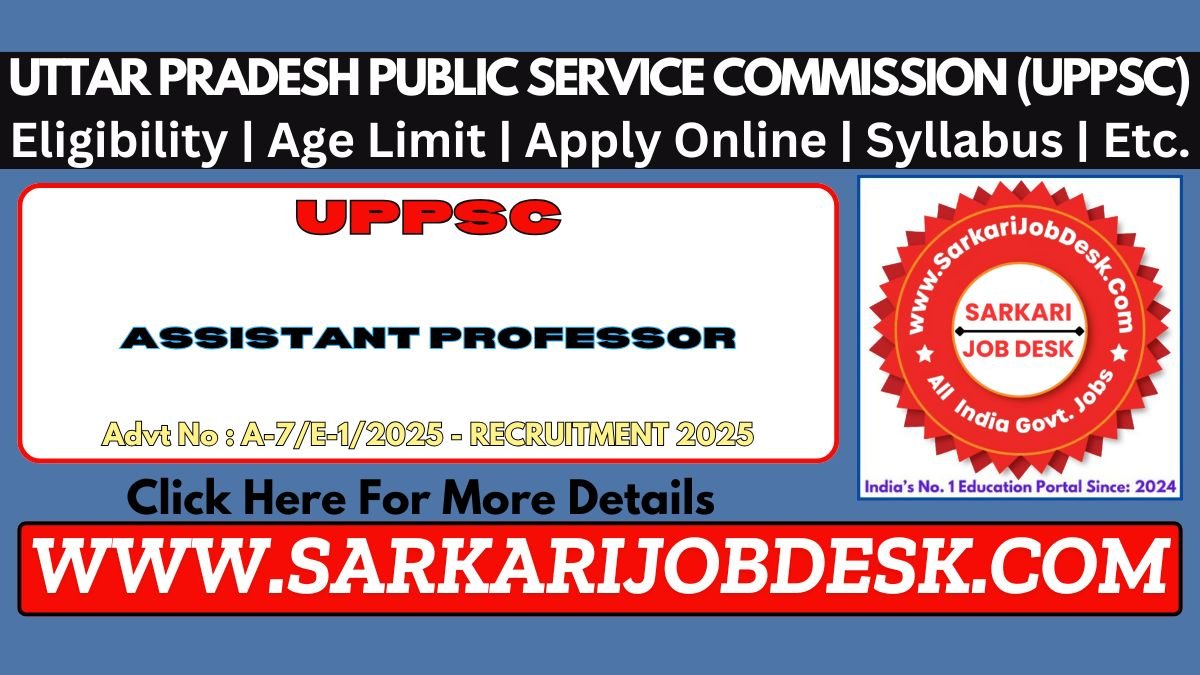 Uttar Pradesh Public Service Commission (UPPSC)UPPSC Govt Degree College Assistant Professor Recruitment 2025UPPSC Assistant Professor Advt No : A-7/E-1/2025 : Short Details of NotificationWWW.SARKARIJOBDESK.COM |