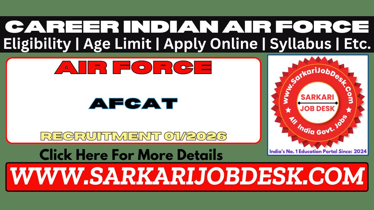 Indian Airforce Recruitment AFCAT 01/2026/ NCC Special EntryCareer Indian Air Force (Bhartiya Vayu Sena)Airforce AFCAT 01/2026 (January 2027) : Short Details of NotificationWWW.SARKARIJOBDESK.COM |