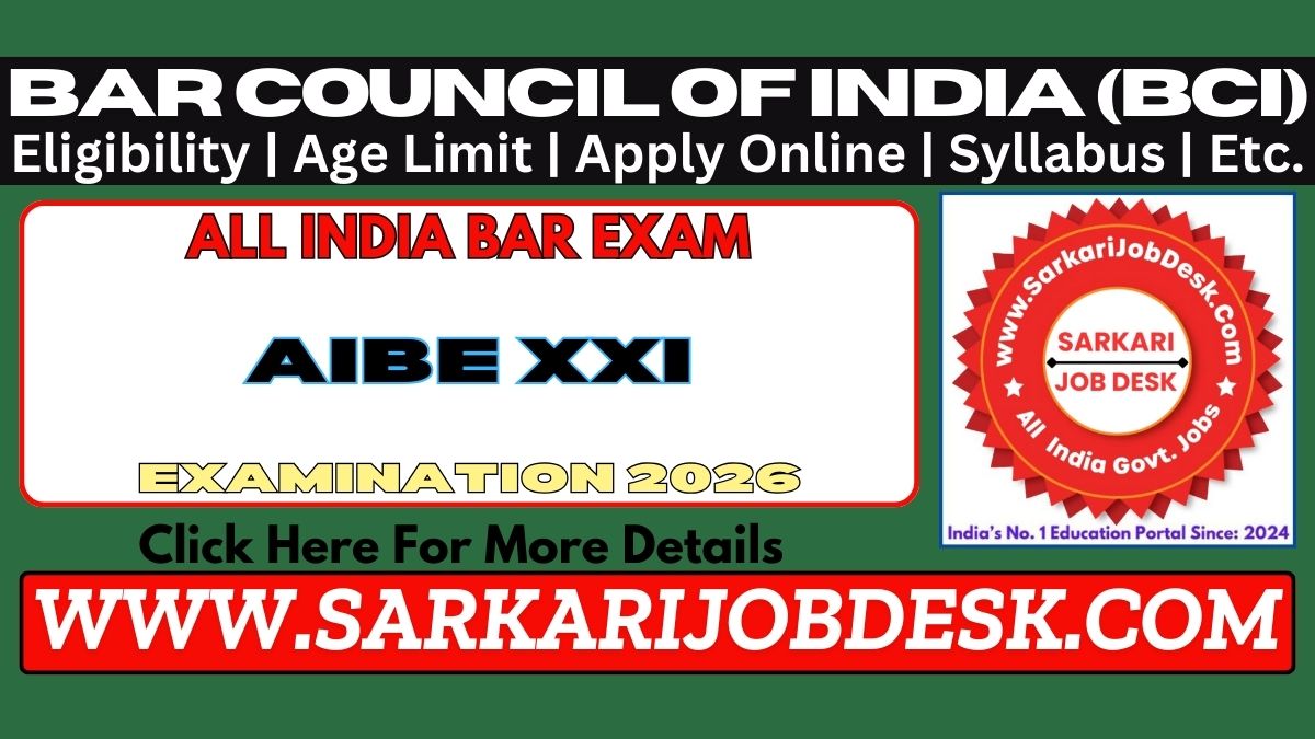 Bar Council of India (BCI)All India Bar Examination AIBE AIBE XXI Examination 2026AIBE 21th Exam 2026 : Short Details of NotificationWWW.SARKARIJOBDESK.COM |