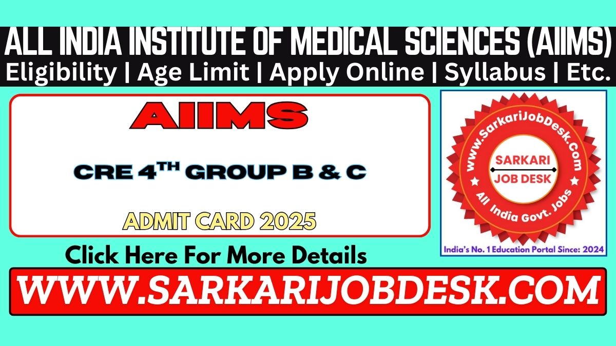 | Short Information : | All India Institute of Medical Sciences (AIIMS) has officially released the AIIMS 4th CRE Group B & C Admit Card 2025 and Exam City Intimation Slip for more than 1000+ non-faculty posts. Candidates who have applied for the Common Recruitment Examination (CRE-4) 2025 can now download their hall ticket and exam city details from the official website.