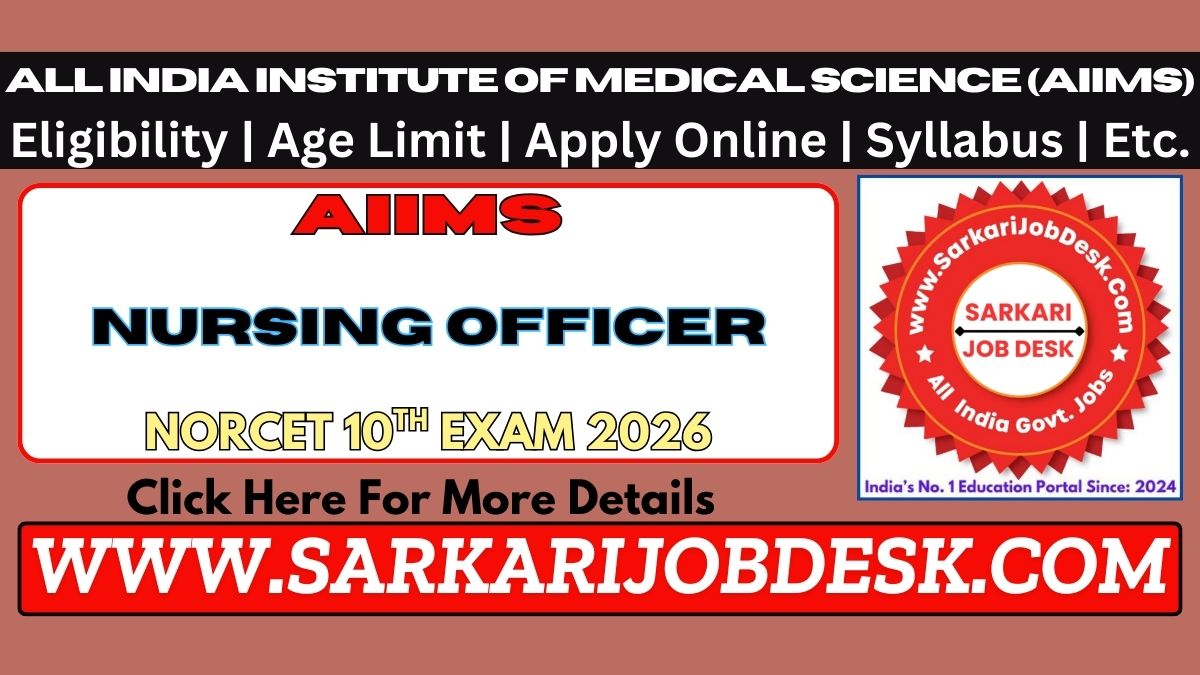All India Institute of Medical Science (AIIMS)AIIMS Nursing Officer Recruitment Common Eligibility Test (NORCET-2026)AIIMS - NORCET 10th Exam 2026 : Short Details of NotificationWWW.SARKARIJOBDESK.COM |
