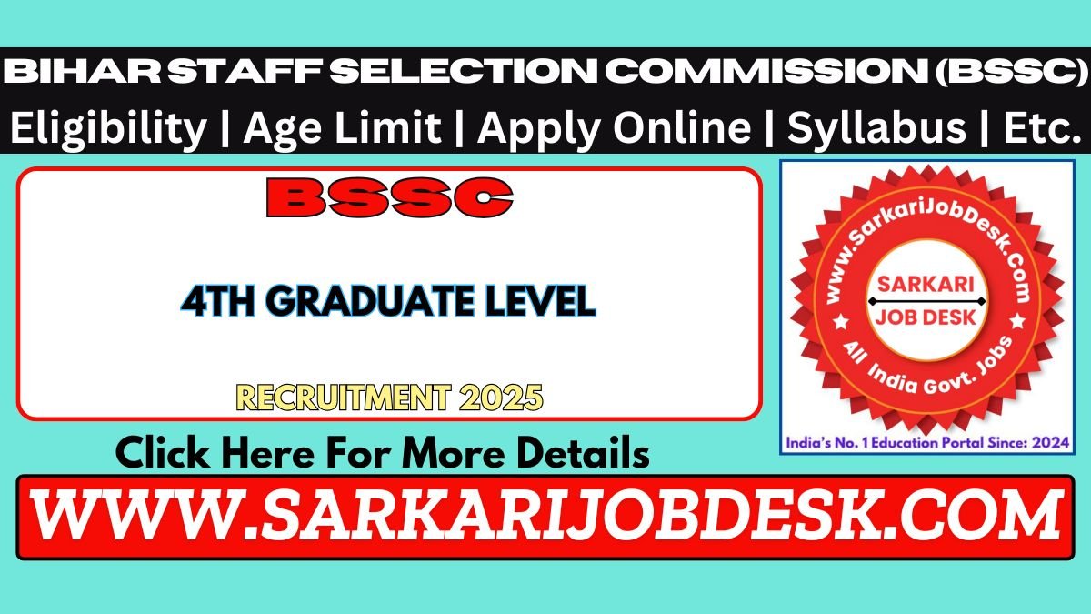 Bihar Staff Selection Commission (BSSC)Bihar BSSC 4th Graduate Level Recruitment 2025Bihar BSSC 4th Graduate Level Advt No. 05/2025 : Short Details of NotificationWWW.SARKARIJOBDESK.COM |