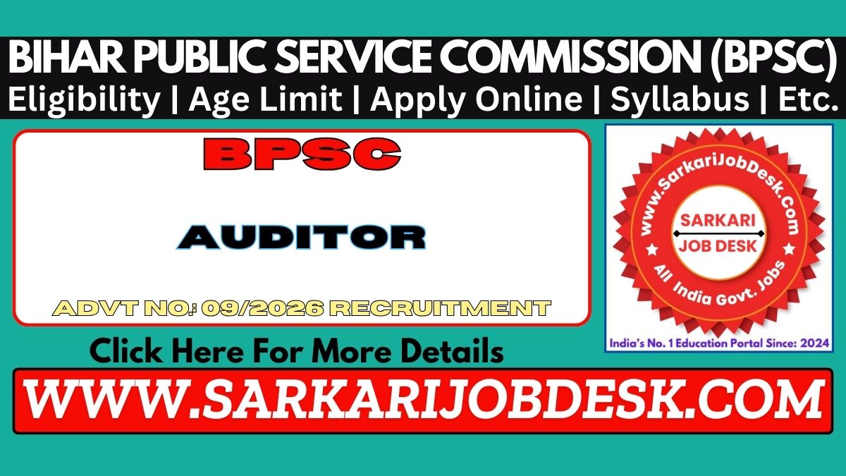Bihar Public Service Commission (BPSC)BPSC Auditor under Panchayati Raj Dept., Govt. of Bihar. Recruitment 2026BPSC Auditor Advt No. : 09/2026 : Short Details of NotificationWWW.SARKARIJOBDESK.COM |