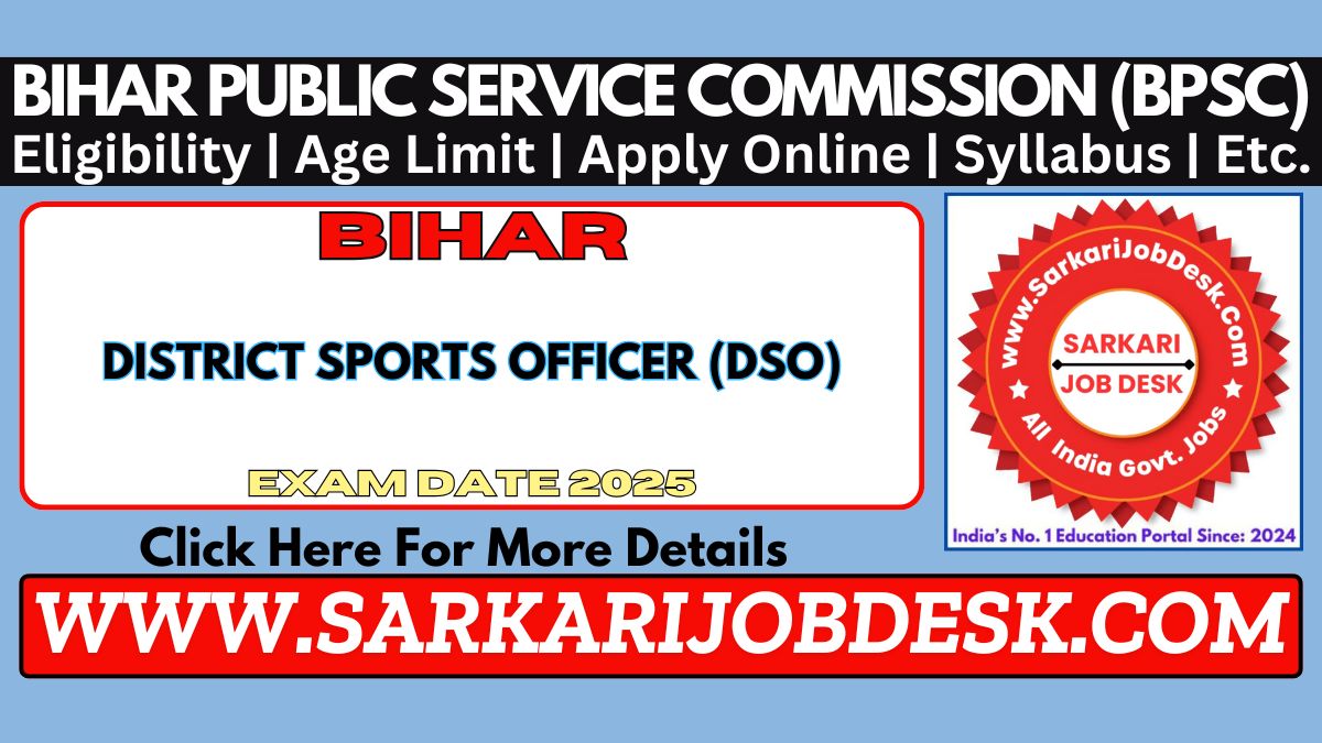 | Short Information : | Bihar Public Service Commission (BPSC) has officially released the Exam Date Notice for the District Sports Officer (DSO) Recruitment 2025. The written examination will be conducted on 29 & 30 January 2026 for a total of 33 posts under the Sports Department, Government of Bihar.