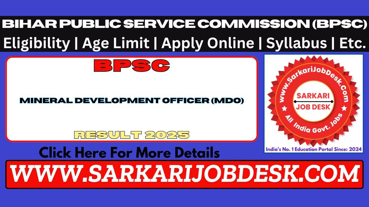 | Short Information : | Bihar Public Service Commission (BPSC) has released the Mineral Development Officer (MDO) Result 2025 for 15 posts under Mines & Geology Department, Govt. of Bihar. The written exam was held on 09–10 August 2025, and the result was declared on 03 November 2025.