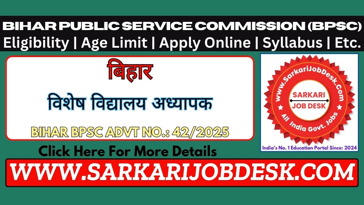 Bihar Public Service Commission (BPSC)BPSC Special School Teacher Recruitment 2025BPSC SST Advt No. : 42/2025 : Short Details of NotificationWWW.SARKARIJOBDESK.COM |