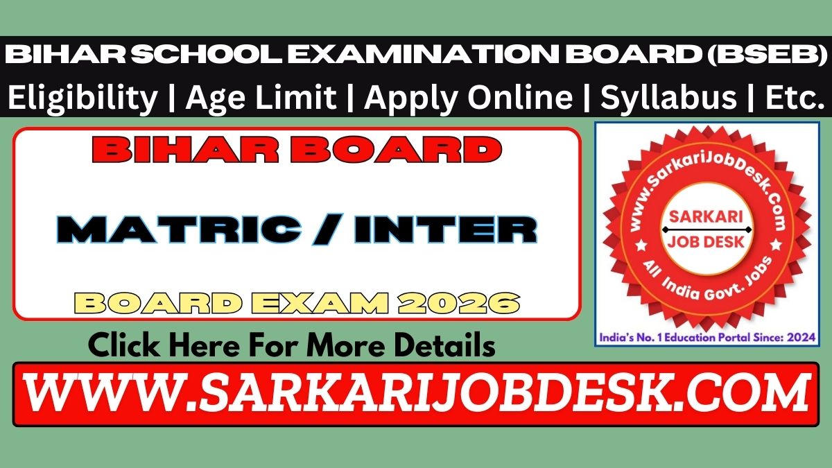 Bihar School Examination Board (BSEB)Bihar Class 10 Matric Secondary & Class 12th Inter Answer Key 2026Bihar Board Exam 2026 : Short Details of NotificationWWW.SARKARIJOBDESK.COM |