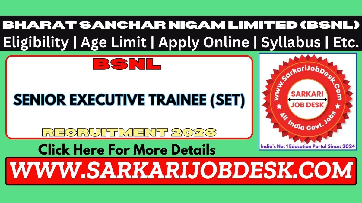 Bharat Sanchar Nigam Limited (BSNL)BSNL Senior Executive Trainee (Telecom & Finance) Recruitment 2026BSNL SET Exam 2026 : Short Details of NotificationWWW.SARKARIJOBDESK.COM |