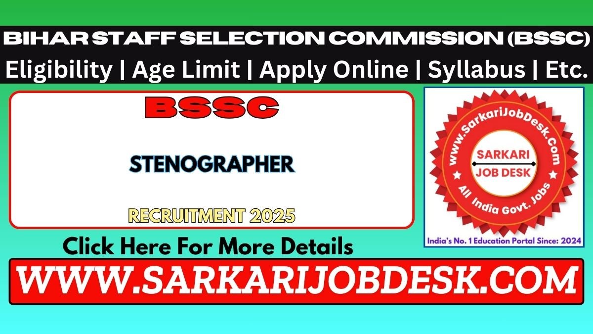 Bihar Staff Selection Commission (BSSC)Bihar BSSC Stenographer Recruitment 2025Bihar BSSC Stenographer Advt No. : 07/2025 : Short Details of NotificationWWW.SARKARIJOBDESK.COM |