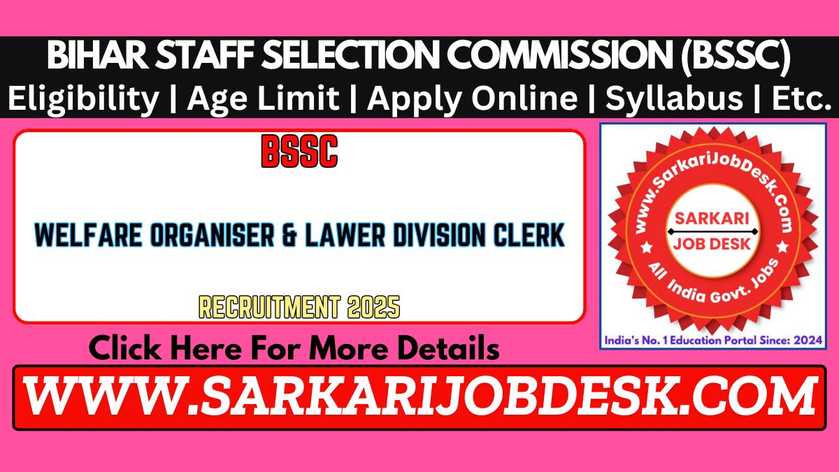 Bihar Staff Selection Commission (BSSC)Bihar Welfare Organiser (WO) & Lower Division Clerk (LDC) Recruitment 2025BSSC Advt No.: 02/2025 : Short Details of NotificationWWW.SARKARIJOBDESK.COM |