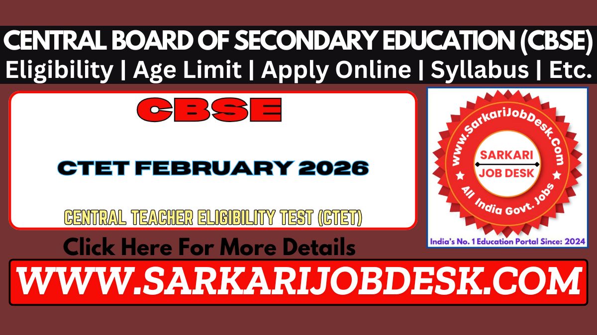 - Central Board of Secondary Education CBSE Are Released the Central Teacher Eligibility Test CTET Paper I to V & VI to VIII Exam February 2026. Candidate Can Apply Online 27/11/2025 to 18/12/2025.