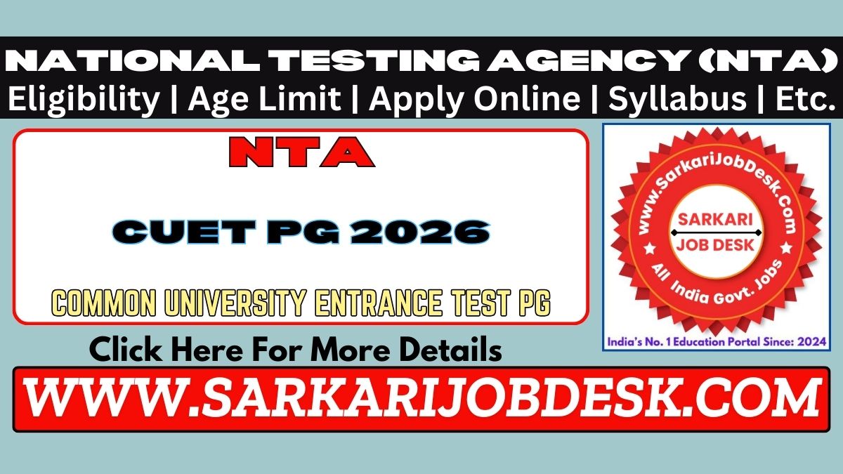 National Testing Agency (NTA)NTA Common University Entrance Test CUET PG 2026NTA CUET PG 2026 : Short Details of NotificationWWW.SARKARIJOBDESK.COM |