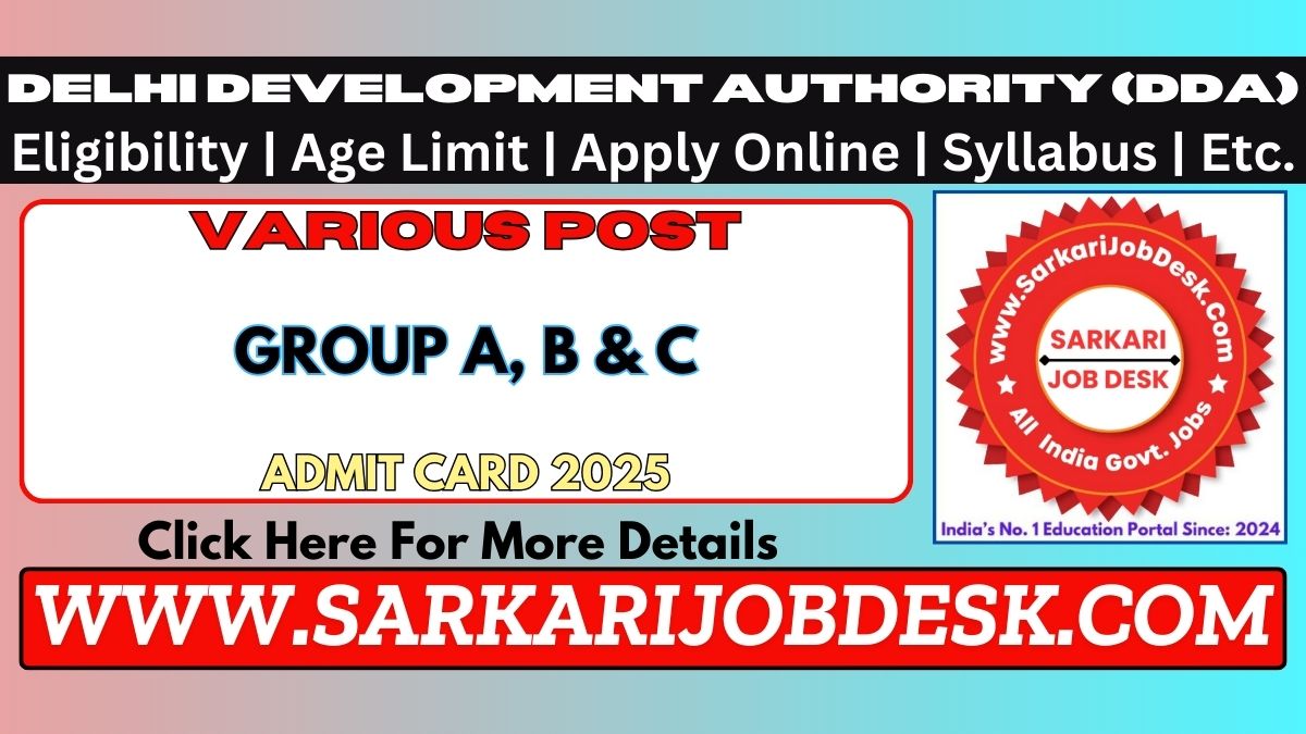 DDA Group A, B & C Various Post Eligibility 2025