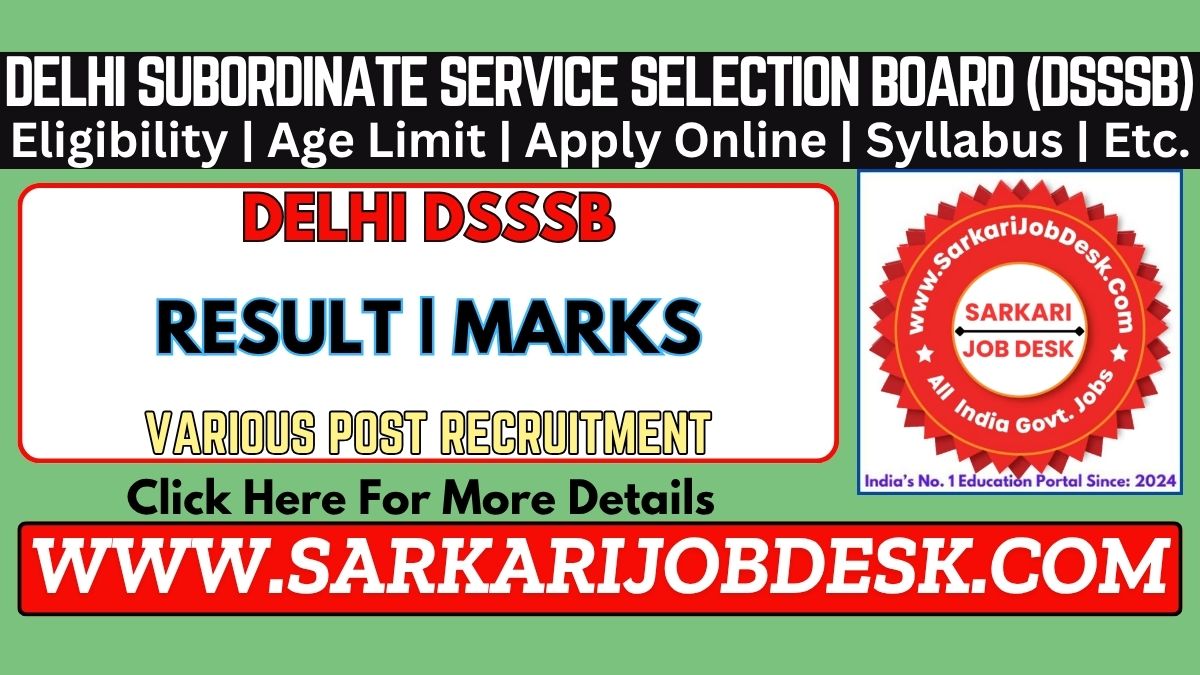Delhi Subordinate Service Selection Board (DSSSB)DSSSB Results | Cutoff | Marks | Score Card 2026DSSSB 2026 Result : Short Details of NotificationWWW.SARKARIJOBDESK.COM |