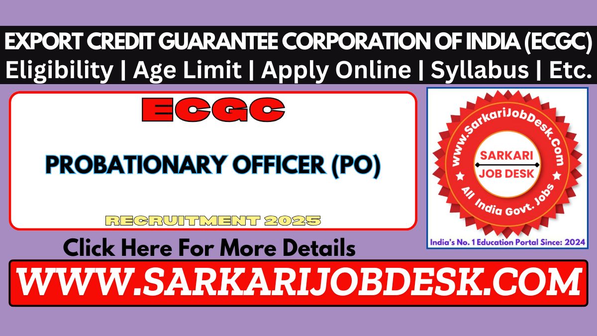 Export Credit Guarantee Corporation of India (ECGC)Export Credit Guarantee Corporation of India Recruitment 2025ECGC PO Recruitment 2025 : Short Details of NotificationWWW.SARKARIJOBDESK.COM |