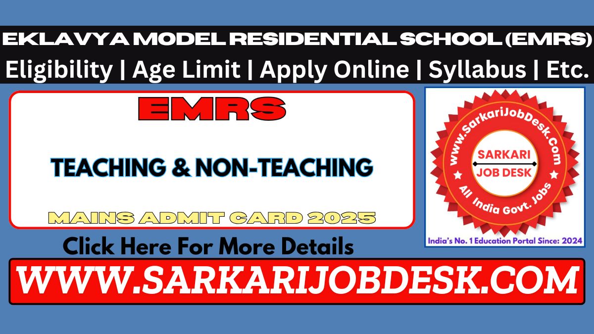 | Name of Post: | EMRS Teaching / Non-Teaching Admit Card 2025 – Exam Date, Hall Ticket Download for 7267 Posts |