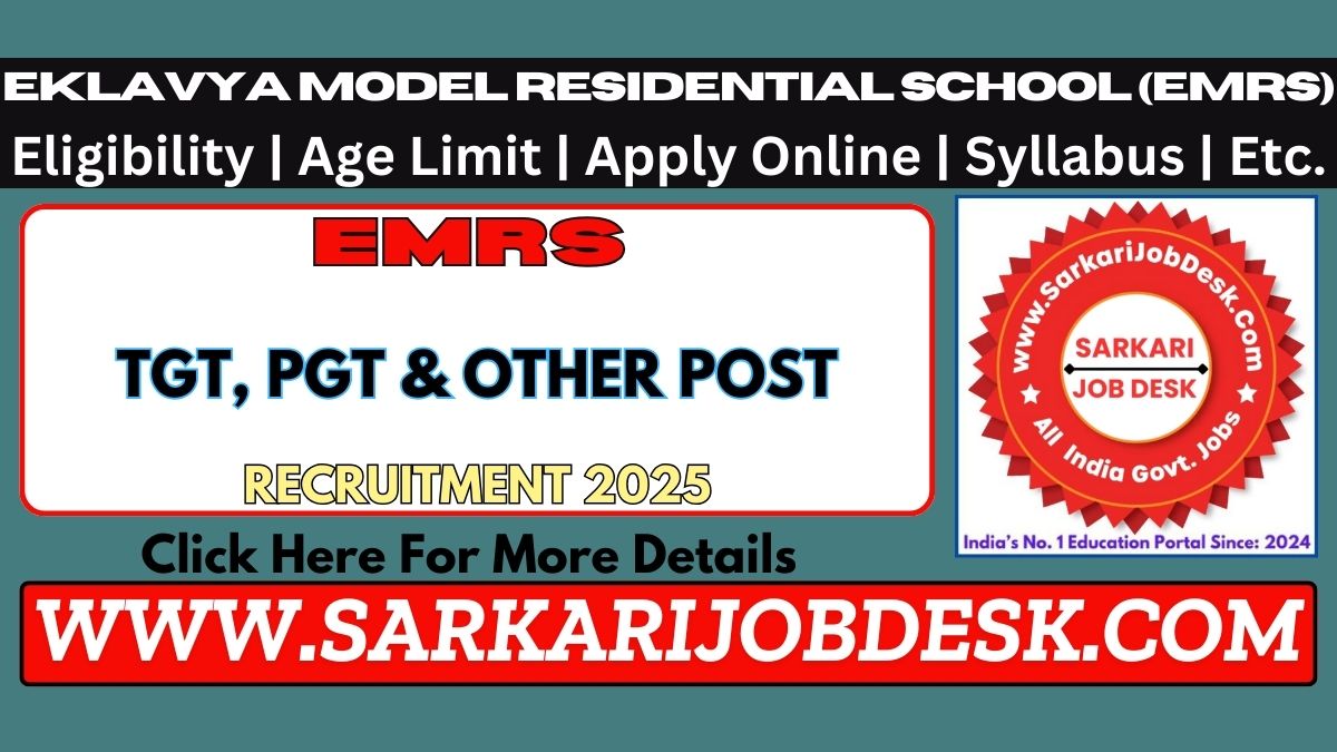 EkLavya Model Residential School (EMRS)EMRS TGT PGT and Various Post Recruitment 2025EMRS ESSE 2025 Exam : Short Details of NotificationWWW.SARKARIJOBDESK.COM |