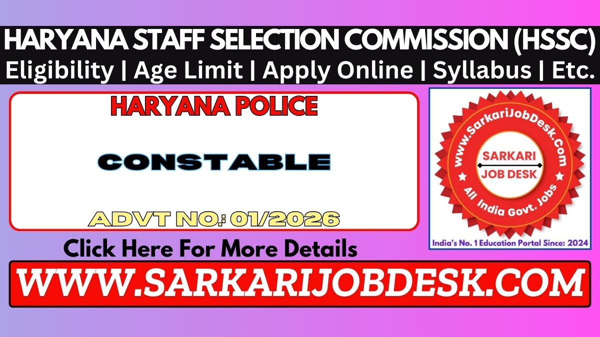 Haryana Staff Selection Commission (HSSC)Haryana Police Constable Recruitment 2026HSSC Constable Advt No.: 01/2026 : Short Details of NotificationWWW.SARKARIJOBDESK.COM |