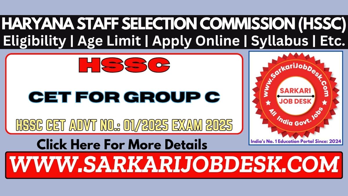 Haryana Staff Selection Commission (HSSC)Haryana CET Group C Examination 2025HSSC CET Advt No.: 01/2025 : Short Details of NotificationWWW.SARKARIJOBDESK.COM |