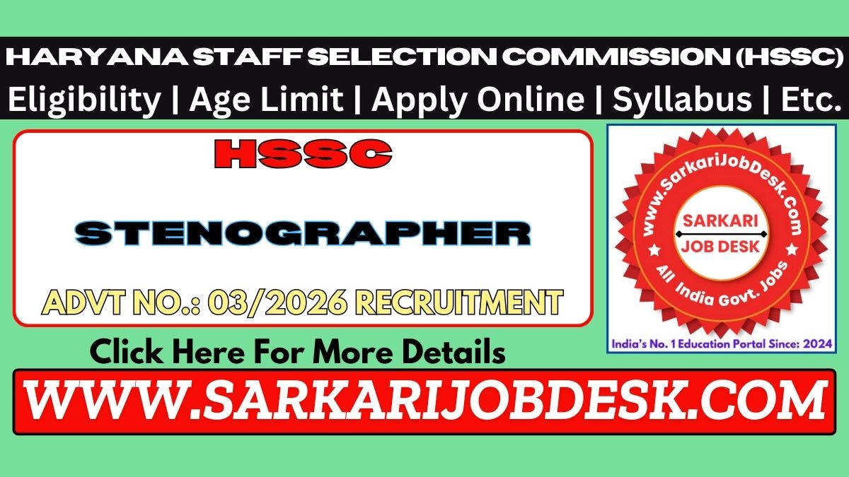 Haryana Staff Selection Commission (HSSC)HSSC CET Phase-II FOR Group-C (STENO) Various Posts Recruitment 2026HSSC Steno Advt No.: 03/2026 : Short Details of NotificationWWW.SARKARIJOBDESK.COM |