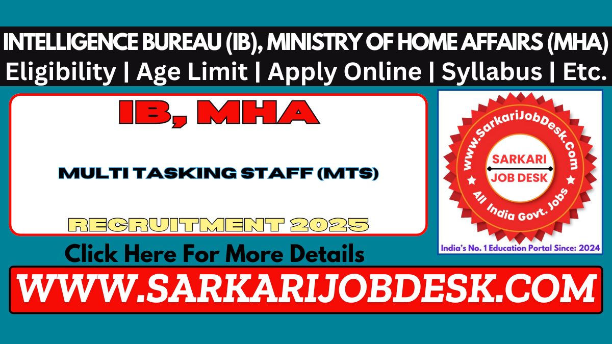 Intelligence Bureau (IB), Ministry of Home Affairs (MHA)IB, MHA Multi-Tasking Staff MTS (General) Examination 2025IB, MHA MTS Recruitment 2025 : Short Details of NotificationWWW.SARKARIJOBDESK.COM |