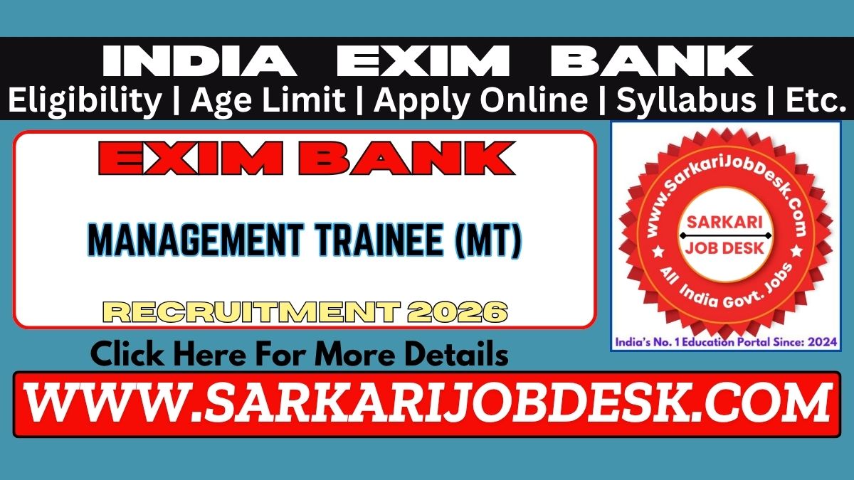 India Exim BankIndia Exim Bank Management Trainee Recruitment 2026IEB MT Exam 2026 Advt No.: HRM/ MT/ 2025-26/ 05 : Short Details of NotificationWWW.SARKARIJOBDESK.COM |