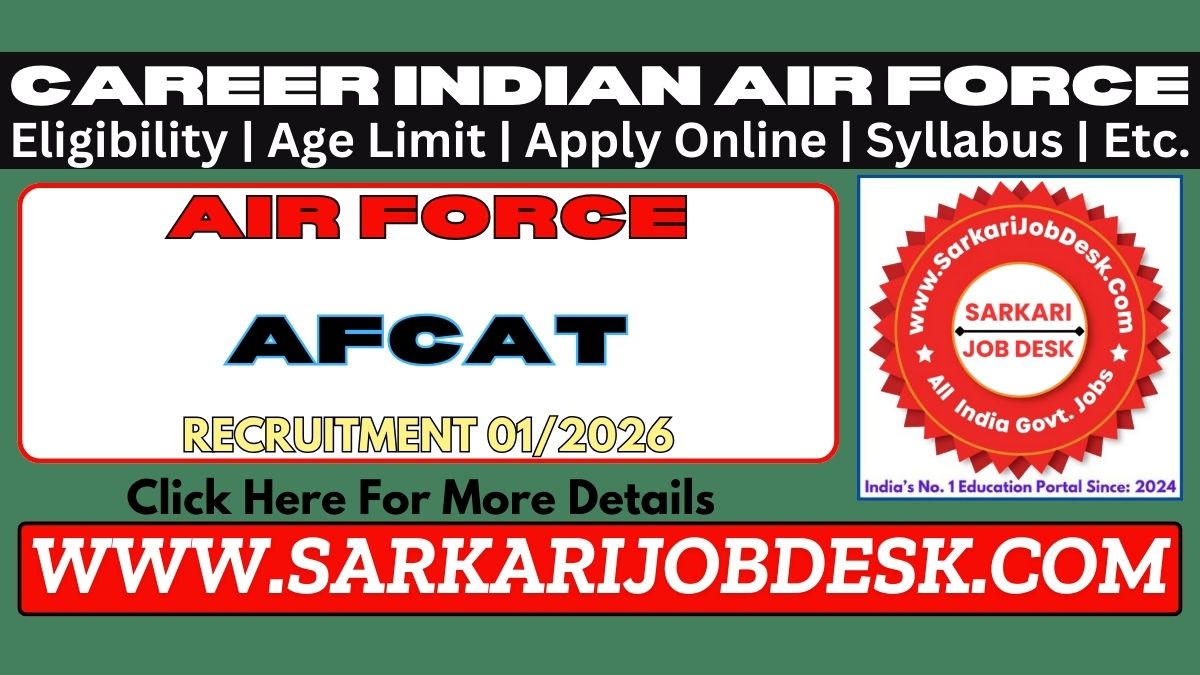 Indian Airforce Recruitment AFCAT 01/2026/ NCC Special EntryCareer Indian Air Force (Bhartiya Vayu Sena)Airforce AFCAT 01/2026 (January 2027) : Short Details of NotificationWWW.SARKARIJOBDESK.COM |