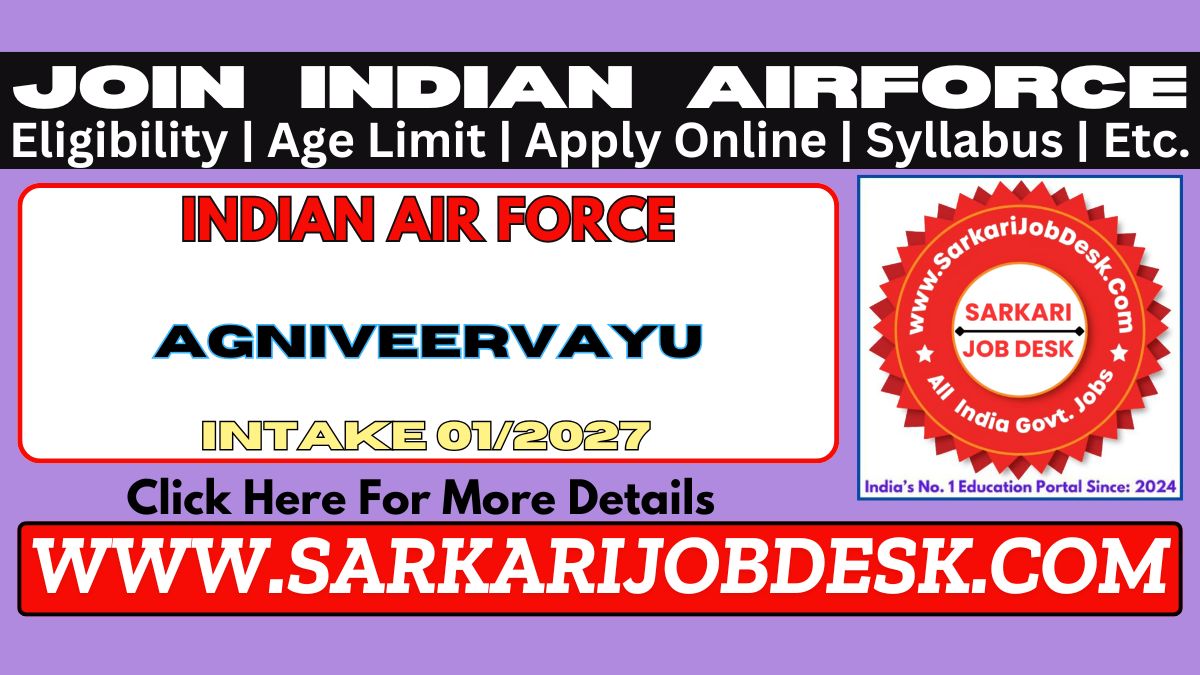 Join Indian Airforce Agnipath Vayu Agniveer SchemeIndian Airforce Agniveer Vayu Selection Test 2026Agniveer Vayu Intake 01/2027 :Short Details of NotificationWWW.SARKARIJOBDESK.COM |