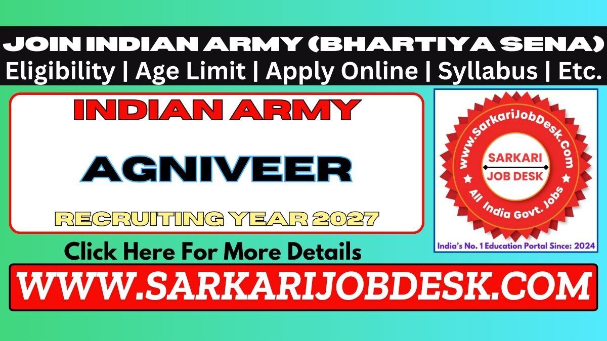Join Indian Army (Bhartiya Sena)Indian Army Agniveer Recruiting Year 2027Army Agniveer Rally Exam 2026 : Short Details of NotificationWWW.SARKARIJOBDESK.COM |